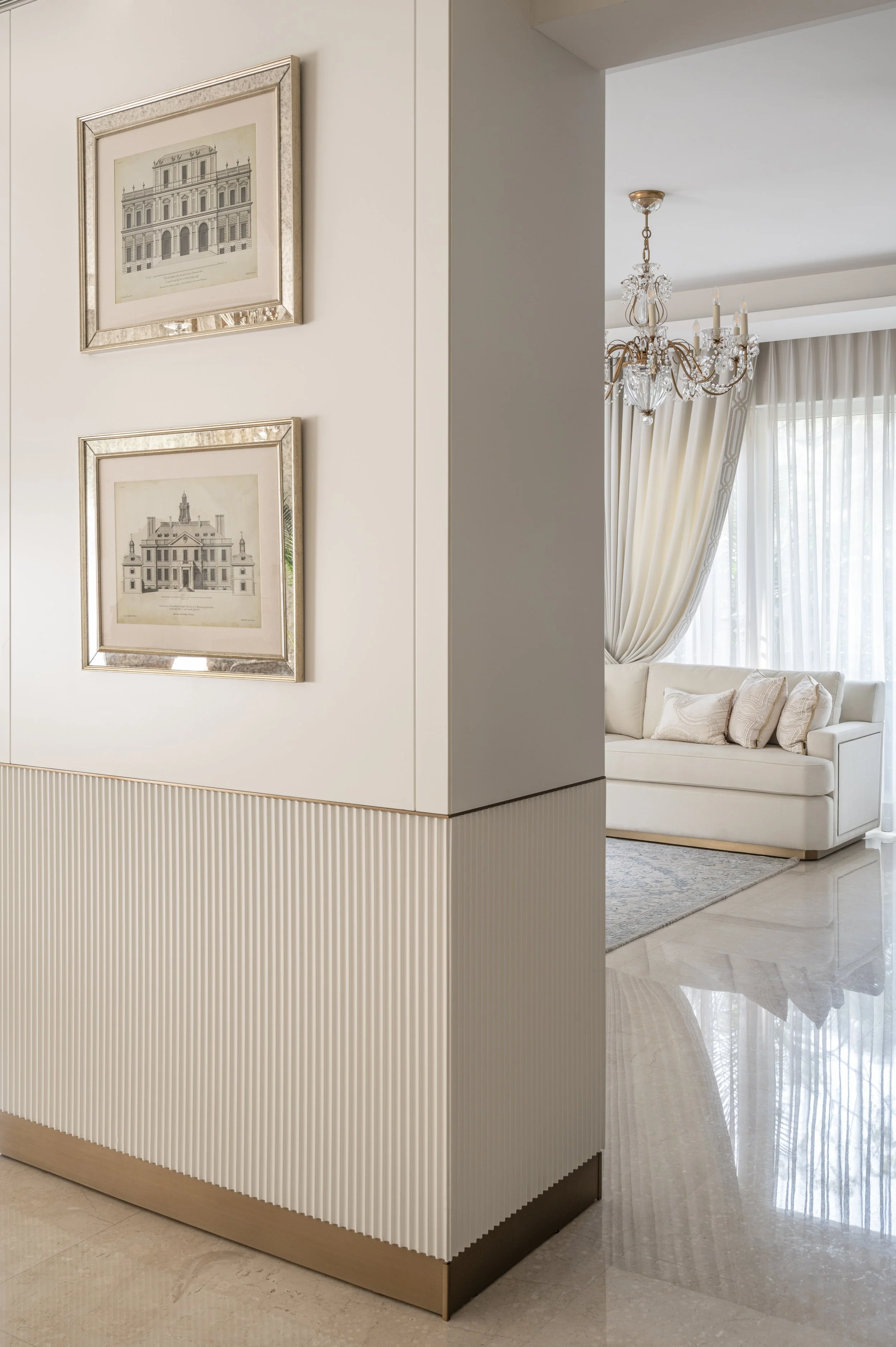 This residence 4000 sq.ft. apartment in the heart of South Delhi harmonizes understated elegance with practicality, reflecting the homeowners' refined taste. Classic modern millwork and custom furniture define the design, with a focus on intricate, invisible detailing.